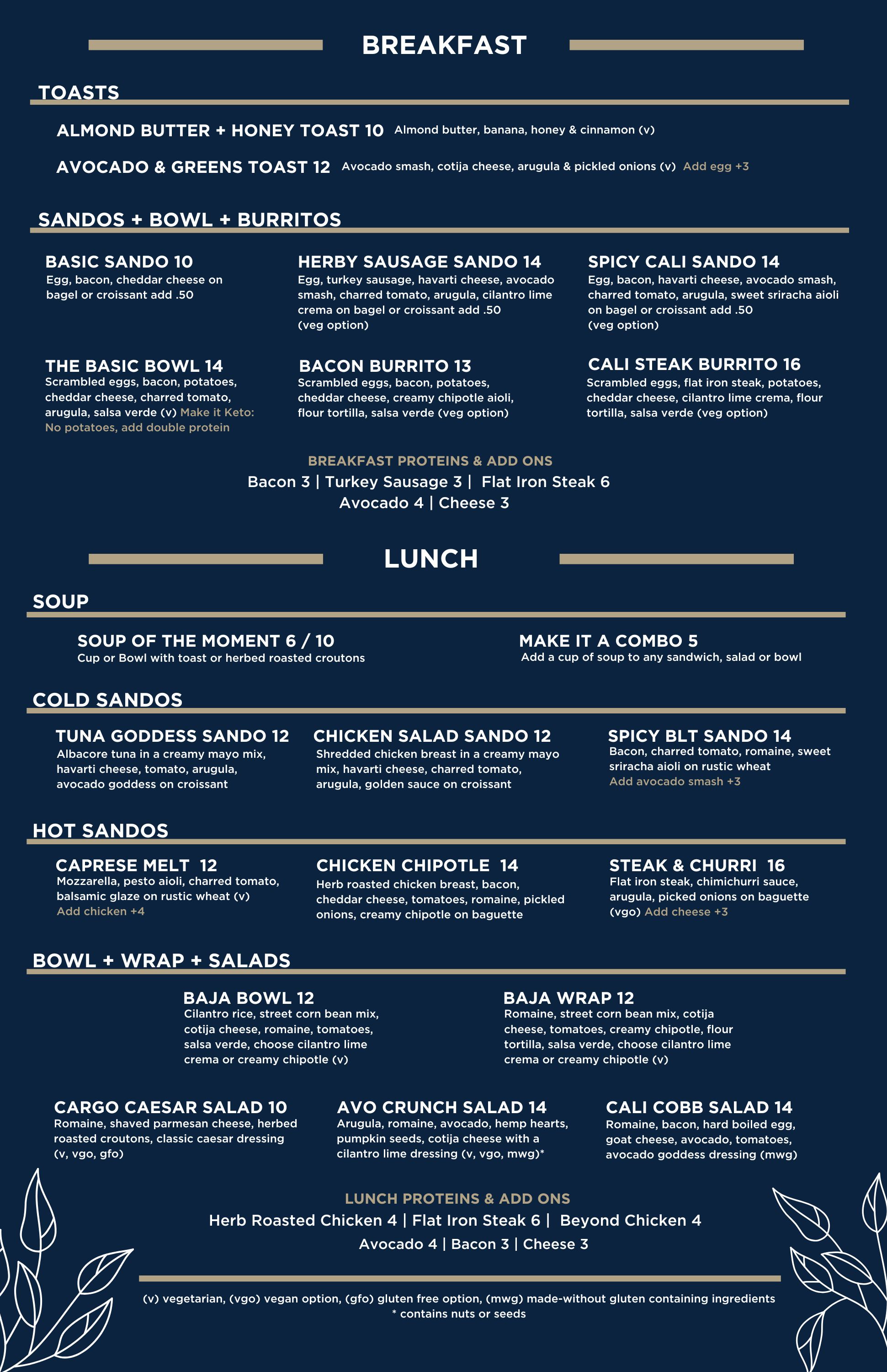 HAVE AVAILABLE OUR FULL DRINK AND FOOD MENU WITH MADE TO ORDER FOOD ITEMS!
